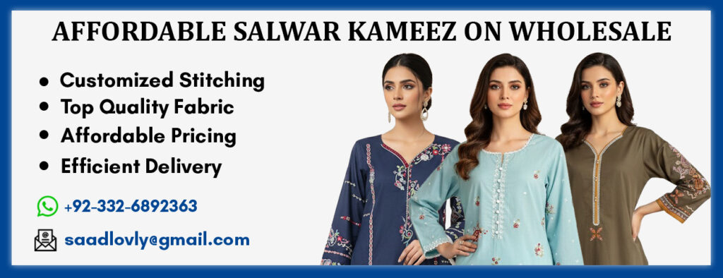 Faisalabadfabricstore.com proudly offers a wide and budget-friendly collection of ladies salwar kameez on wholesale, perfect for resellers, boutiques, online stores, and home-based businesses. With our stitching factory operating since 2010, we understand how to create elegant designs, clean finishing, and stylish cuts that attract customers in every season.