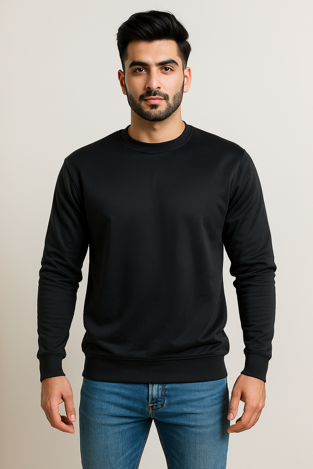 Black Interlock Fleece Sweatshirts Wholesale – Crew Neck