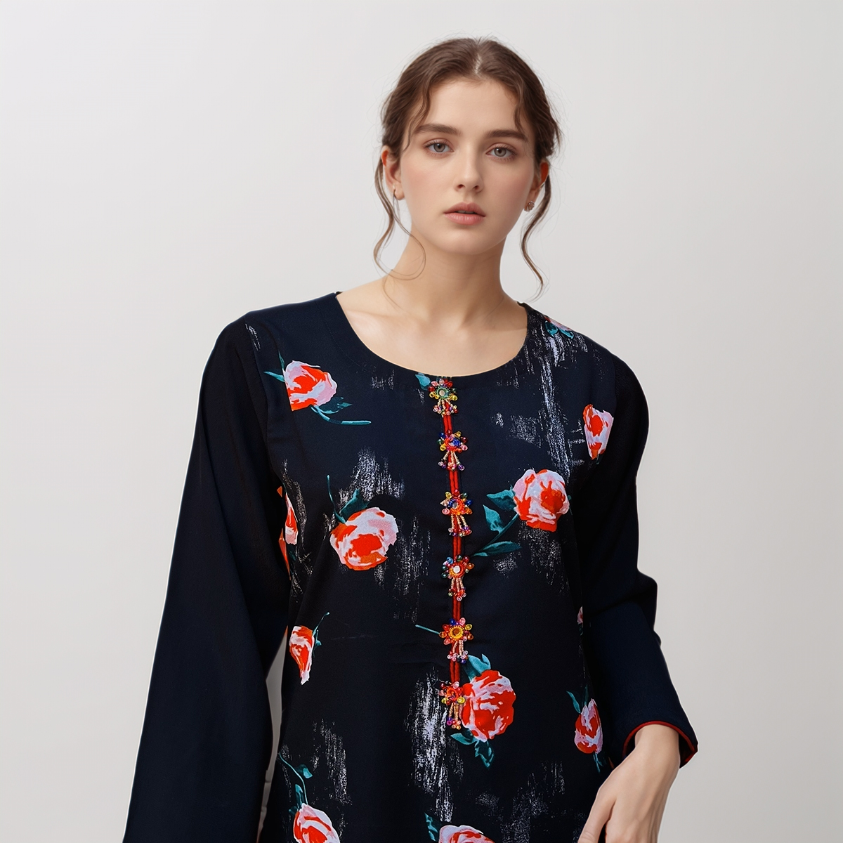 This Black Stylish Party Wear Dress In Pakistan is perfect for those who love elegance and comfort. Made from high-quality chiffon fabric, the printed kameez adds a chic and sophisticated touch to your outfit. The breathable and lightweight material ensures you stay comfortable throughout any event.