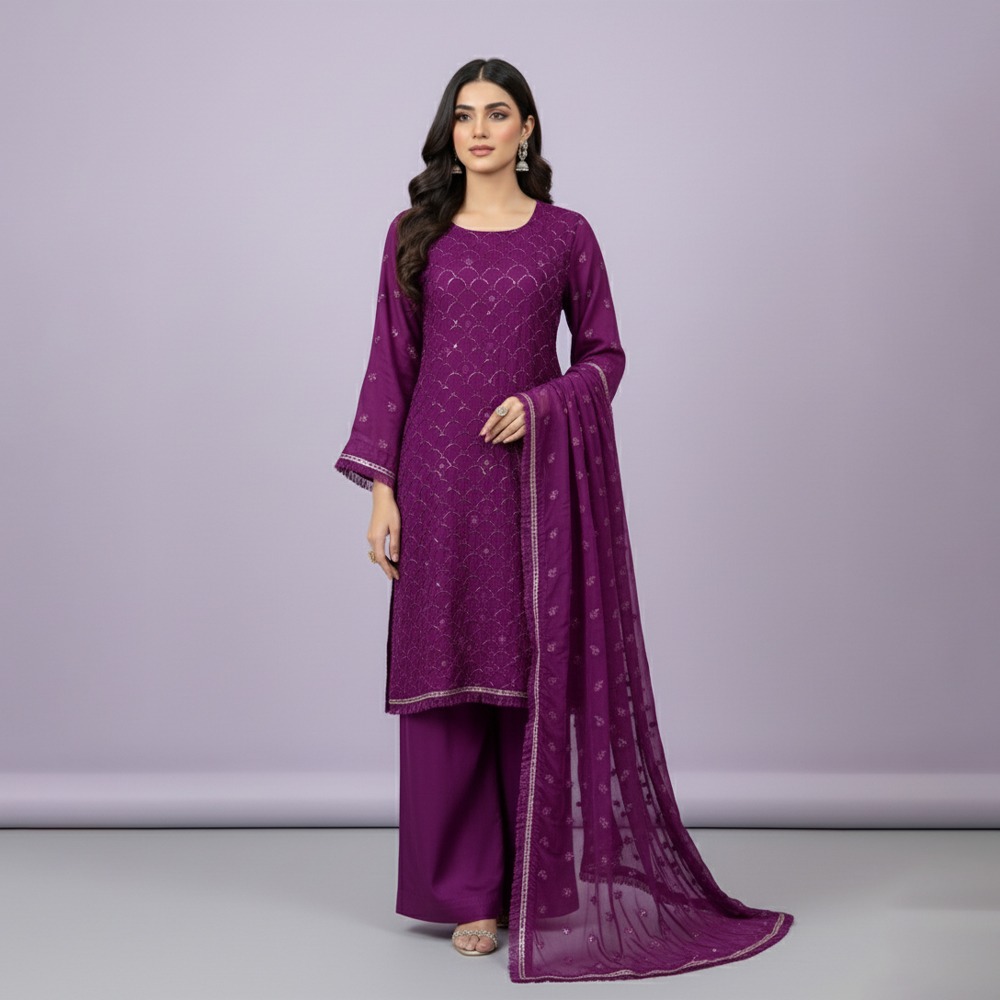 Ideal for boutiques, retailers, and bulk buyers, the Purple Pakistani Chiffon Suit Wholesale delivers premium quality, eye-catching design, and strong resale value for customers looking for stylish and elegant chiffon outfits.