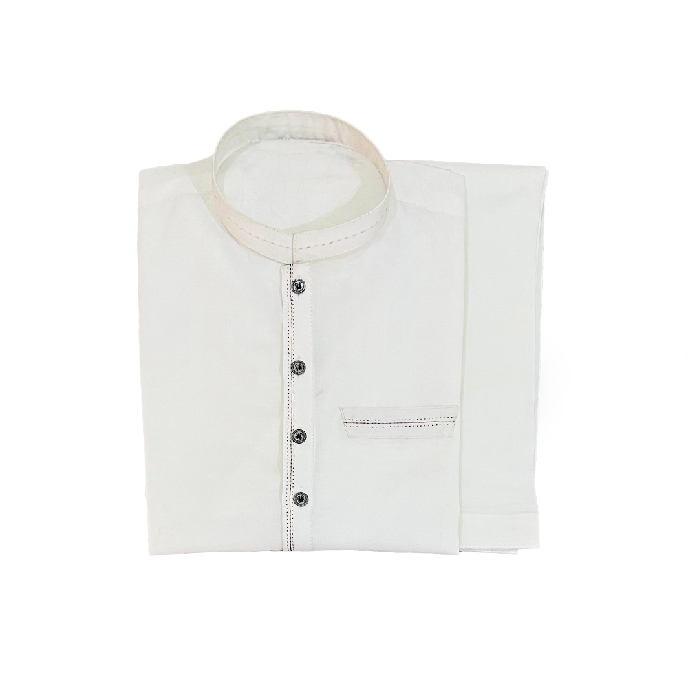 Featuring an open cuff design, this ensemble offers ease of movement and a modern flair. The same color pajama/shalwar completes the look seamlessly, creating a harmonious ensemble. Whether it’s a special occasion or a casual outing, this White Rock kids shalwar kameez is sure to make your little one stand out with style and grace.