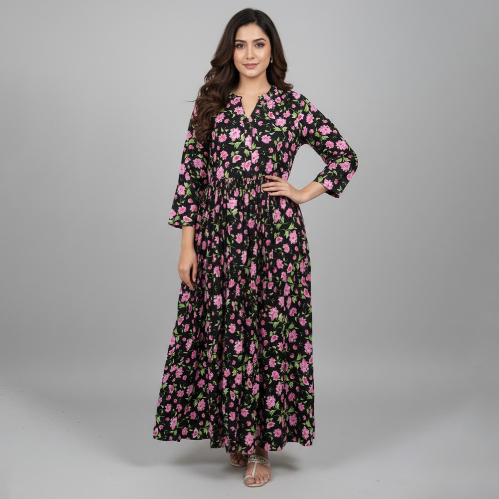 Let’s be real; standard sizes aren’t great anymore. People want clothes that fit them perfectly. And guess what? Our in-house stitching unit makes that totally doable! We also offer wholesale plus-size maxi dresses, which include:
