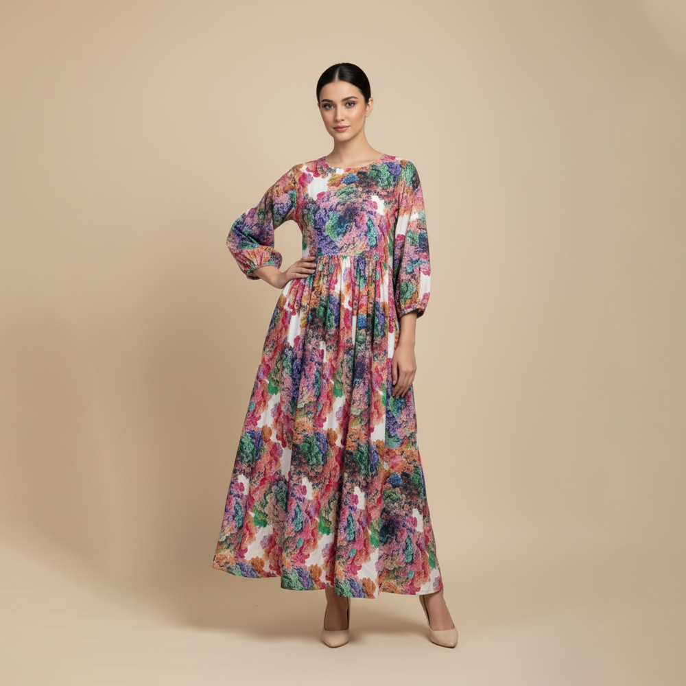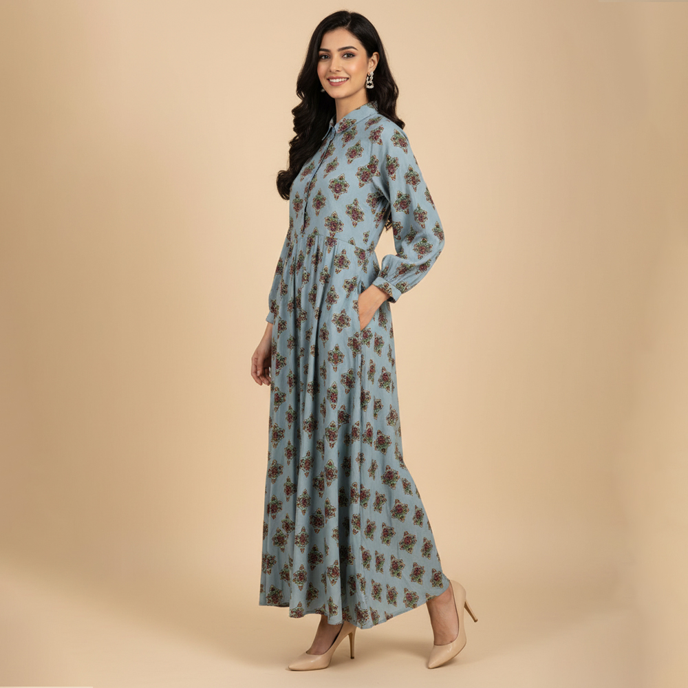 We’re offering two types of maxi dresses: party wear & casual wear. For casual wear, you can witness that our collection mainly consists of printed lawn fabric, which is a perfect choice for the summer.