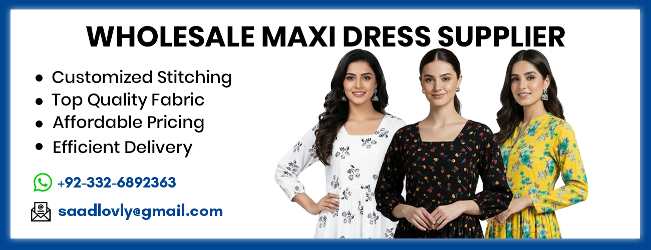 Regarding party & casual wear for women, maxi dresses are crucial in filling the gap of diverse collections. Faisalabad Fabric Store has ten years of international export experience as a wholesale maxi dress supplier. So, it doesn’t matter where you are; we will serve you with our Maxi Dress Wholesale services.